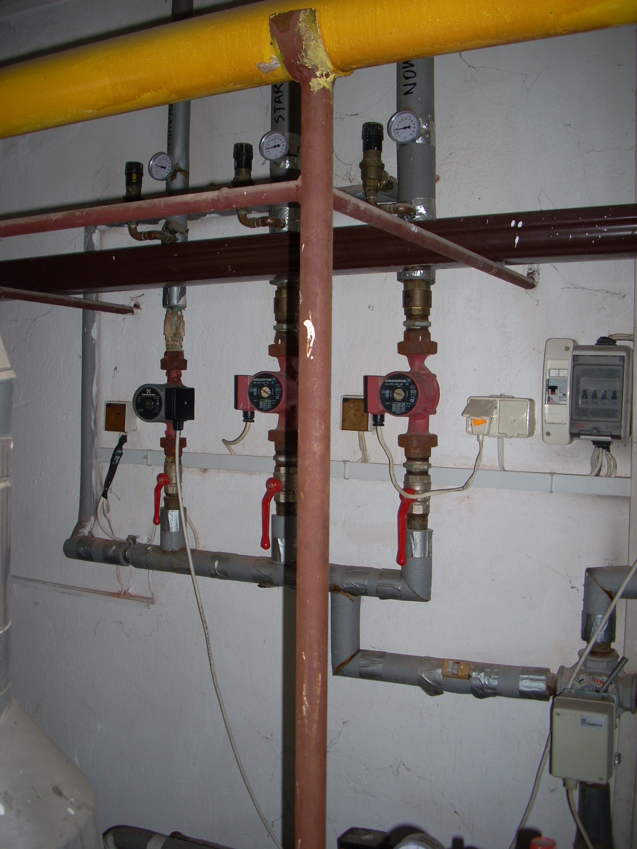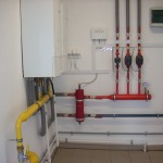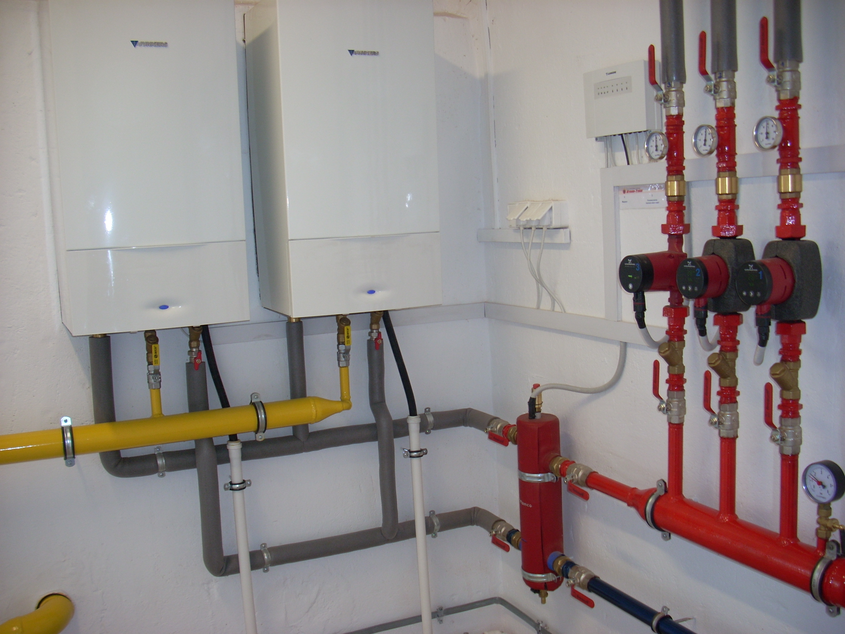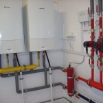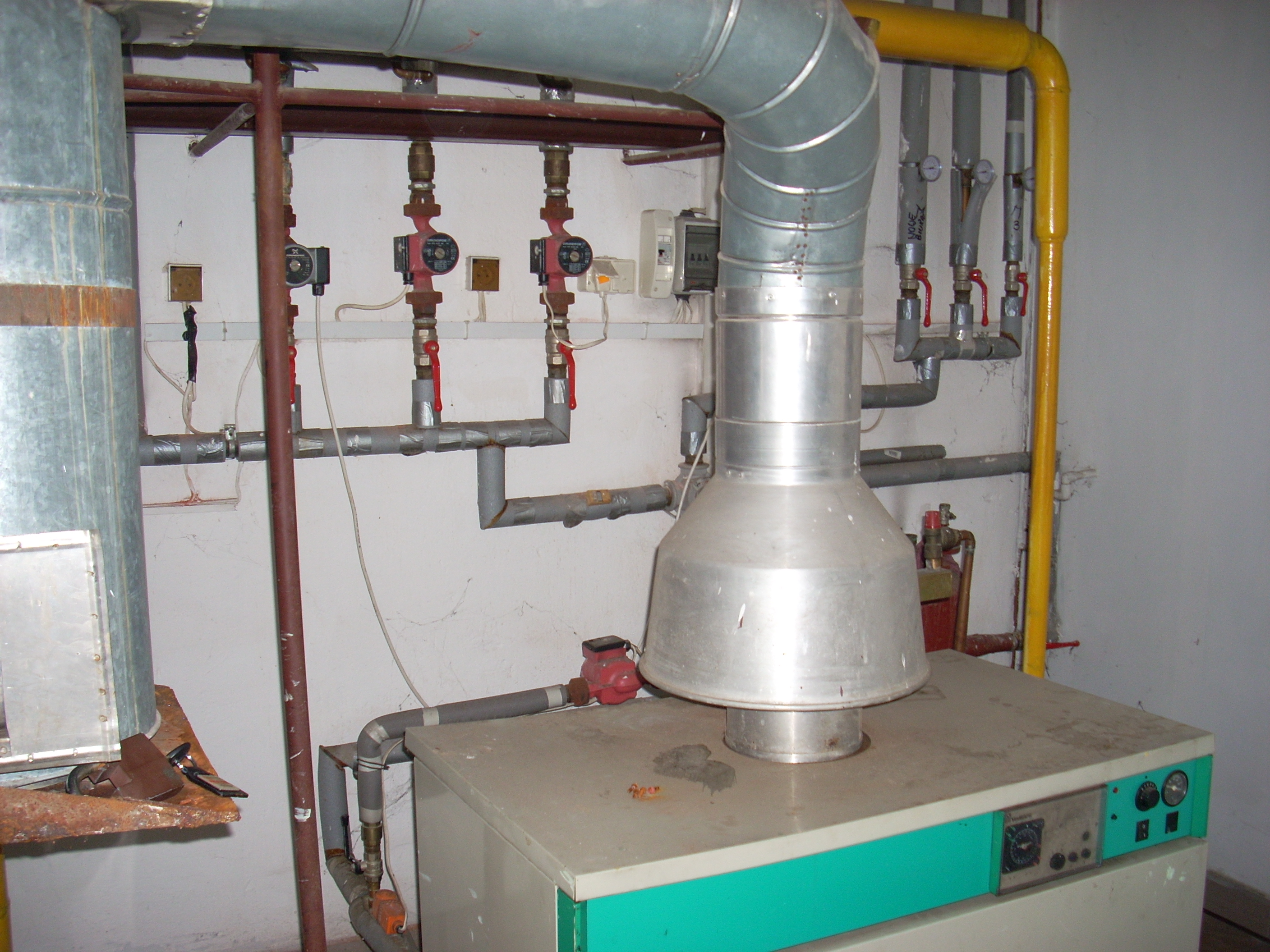 Modernizacja kotłowni gazowej . Wymiana żeliwnego kotła gazowego na niskotemperaturową kaskadę kotłów kondensacyjnych.  Z obiegami  wyposażonymi w elektroniczne pompy zasilające  instalację  CO.