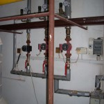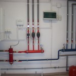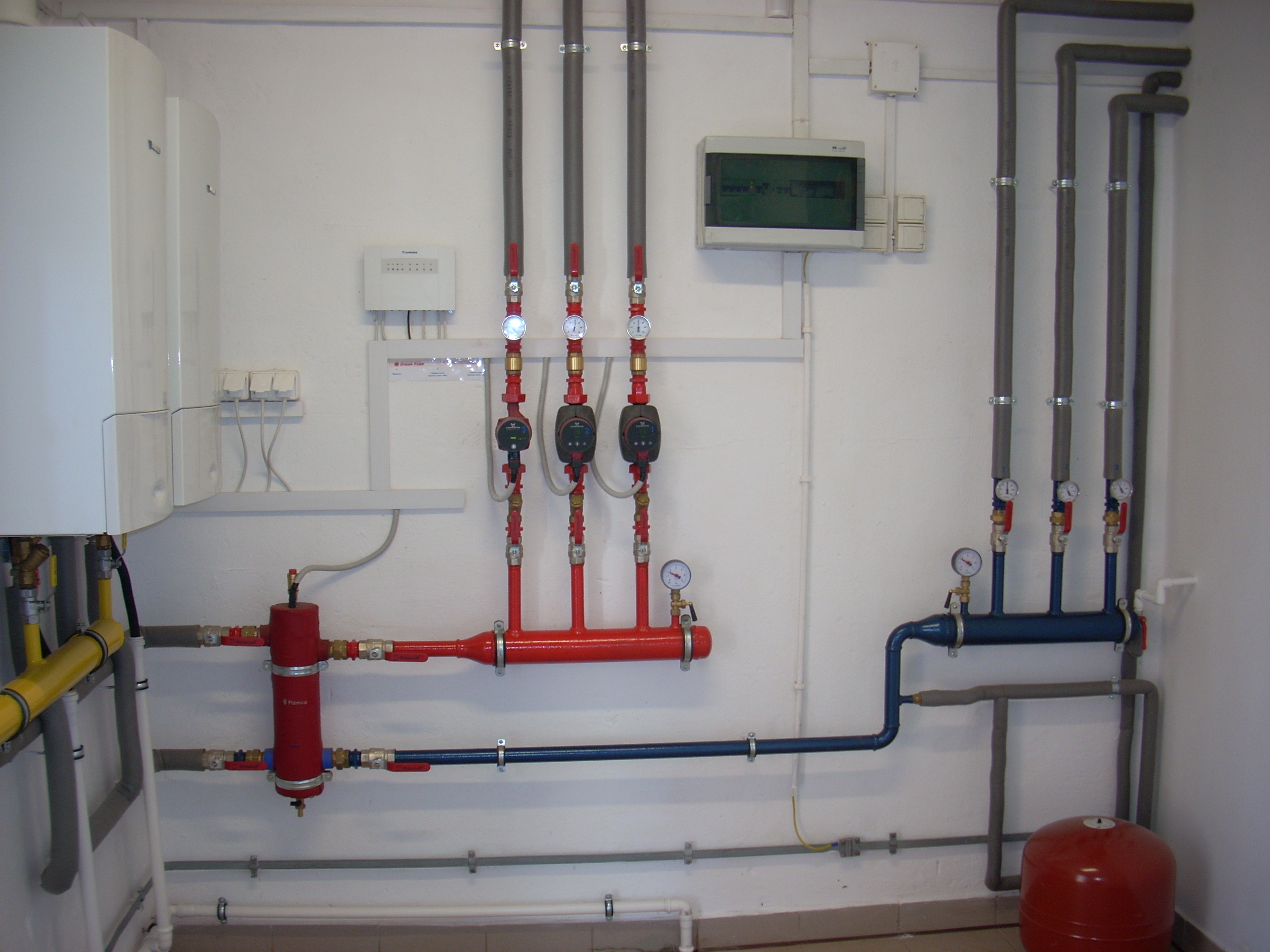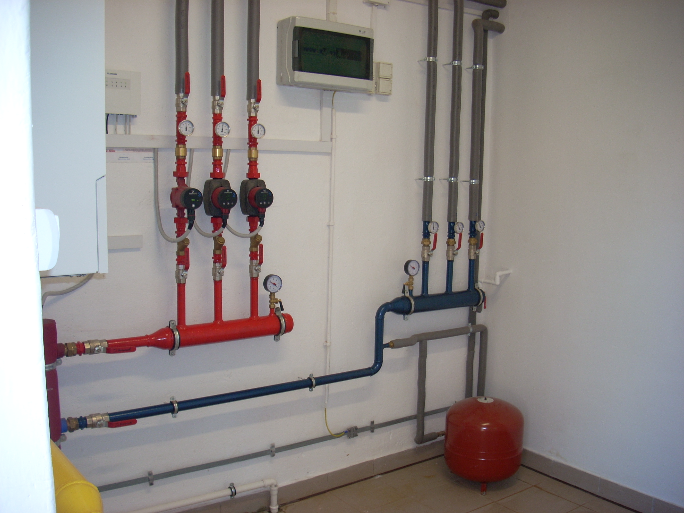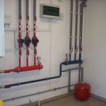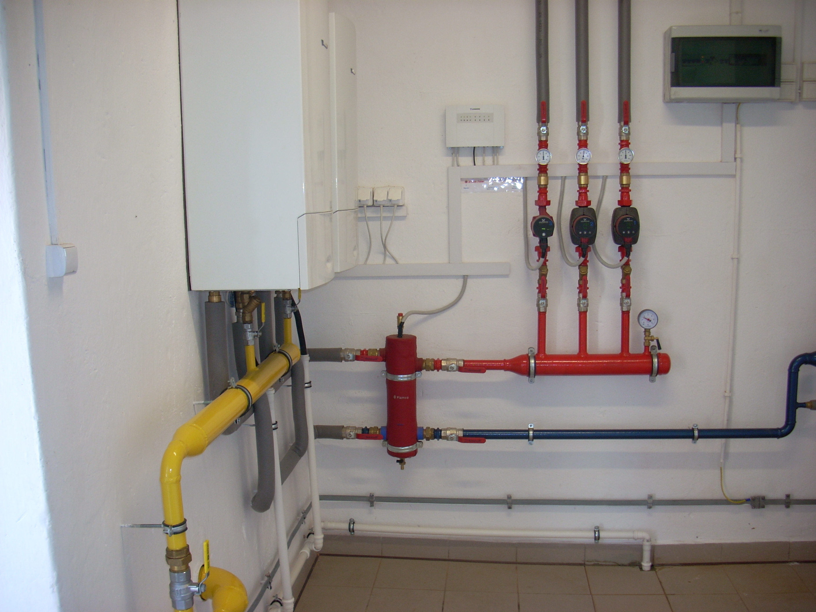 Modernizacja kotłowni gazowej . Wymiana żeliwnego kotła gazowego na niskotemperaturową kaskadę kotłów kondensacyjnych.  Z obiegami  wyposażonymi w elektroniczne pompy zasilające  instalację  CO.